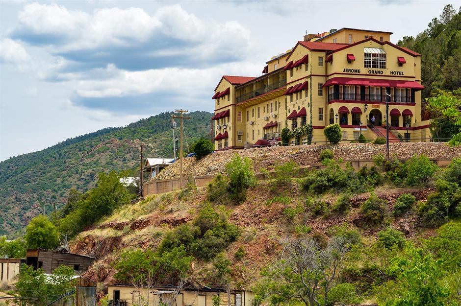 Jerome would've been Arizona's largest ghost town if it wasn't for the artists who moved in when the mines closed in 1953. Dubbed the "wickedest town in the west," Jerome was home to saloons, opium dens, and a hospital, which is now the Jerome Grand Hotel (pictured). There have been reports of phantom footsteps, slamming doors, and floating objects.