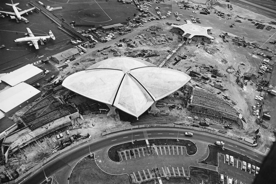 Nothing captured the allure of air travel like Trans World Airlines’ futuristic Flight Center, opened at New York’s John F Kennedy International Airport in 1962. Designed by architect Eero Saarinen, the building was experimental and exuberant, its bold flowing lines expressing the optimism of an exciting new Jet Age. Here we see an aerial view of the construction site in January 1961.