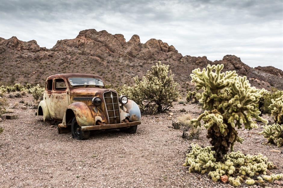 Die bröckelnden Überreste des alten Motels, des Postamts und der ehemaligen Tankstelle sind alles, was – umgeben von kilometerweiter heißer und staubiger Wüste – von dieser Geisterstadt übrig geblieben ist.
