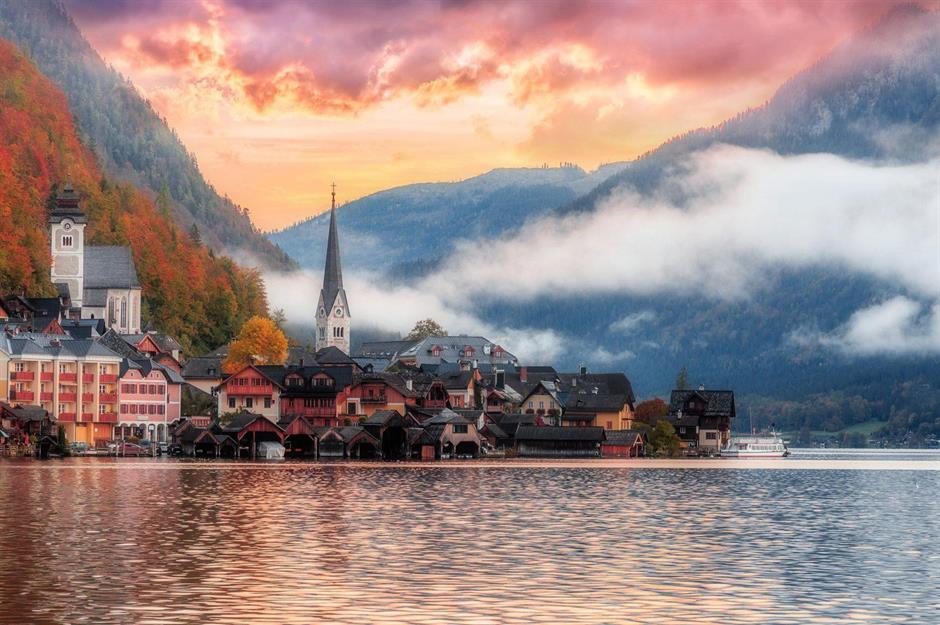 Hallstatt mit seinen pastellfarbenen Häusern, umgeben von Gipfeln und oft tief hängenden Wolken, sieht nicht nur auf diesem Foto postkartenreif aus. Die lange Geschichte des Touristen-Hotspots im bergigen Salzkammergut begann mit der Entdeckung von Salz in der Region bereits in prähistorischer Zeit, möglicherweise schon 4000 v. Chr. Ein Großteil der heutigen Häuser datiert aus dem 16. Jahrhundert. Ein besonderer Hingucker sind die Farben, die so manchen Besucher an bunte Eiscremesorten erinnern.