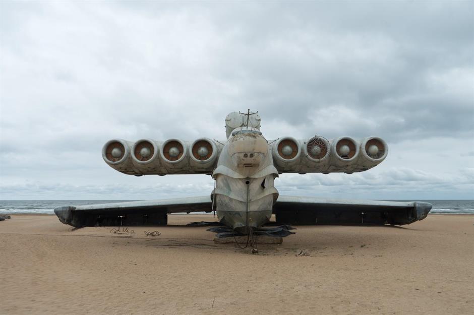 Nein, das hier ist keine vergessene „Star Wars“-Requisite, sondern ein sowjetisches Marineschiff, das seine letzte Ruhestätte an einem Strand bei Derbent im russischen Dagestan gefunden hatte. Das 380 Tonnen schwere, sogenannte KM (Ekranoplan) mit dem Spitznamen „Kaspisches Seemonster“ wurde 1987 zu Wasser gelassen. Nach dem Zusammenbruch der Sowjetunion lag es 30 Jahre lang verlassen am Ufer des Kaspischen Meeres, bis es schließlich ins rund 100 Kilometer entfernte Derbent gebracht wurde. Nun wartet das Monster darauf, in einem Militärmuseum mit Themenpark ausgestellt zu werden und ist zu einer skurrilen Touristenattraktion geworden.