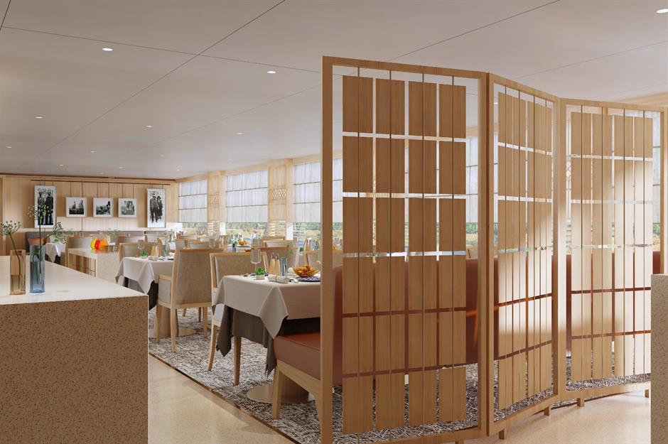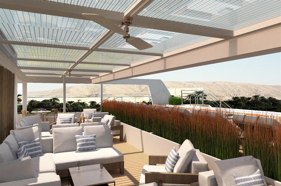 Das nagelneue Nilschiff verfügt über ein helles, skandinavisch inspiriertes Design und bietet viel Platz für entspanntes Dinieren unter freiem Himmel. Einer der begehrtesten Plätze ist sicherlich die „Aquavit Terrace & Lounge“, von der man einen herrlichen Blick auf die vorbeiziehende Landschaft hat.