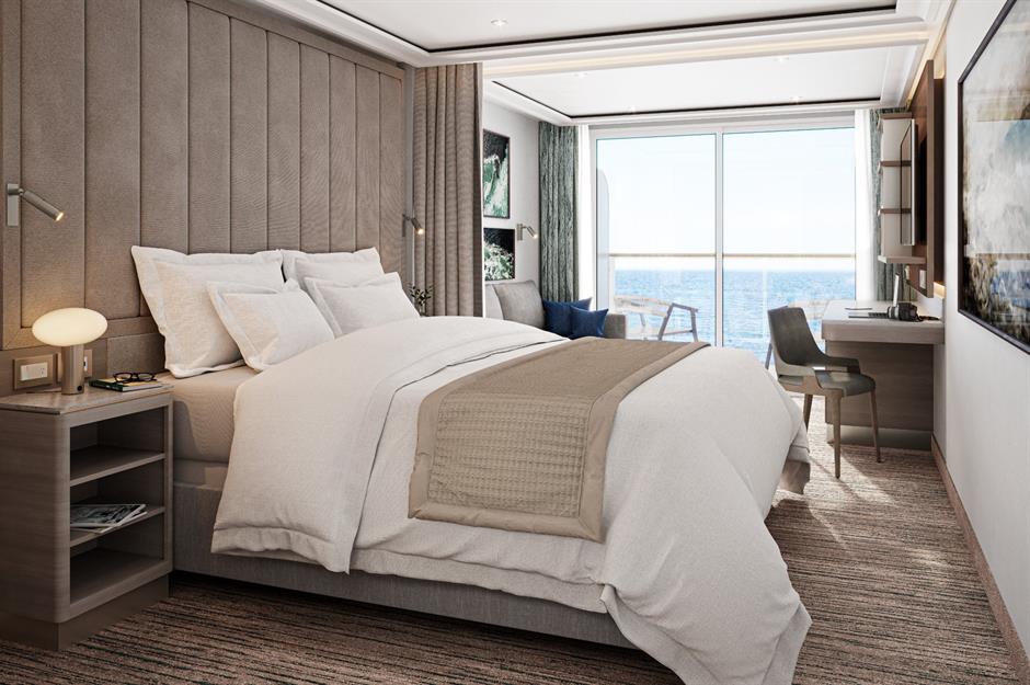 Das Kabinenangebot in dem 20-Deck hohen Luxusdampfer reicht von Studios für Alleinreisende bis hin zur Suite „The Haven“ inklusive Butler, der den Gästen auf Wunsch Tag und Nacht bereitsteht. Die Balkonkabinen im mittleren Preissegment sind mit 25 Quadratmetern recht geräumig. Das Frühstück wird im Zimmer serviert, was bei schönem Wetter natürlich auch auf dem neun Quadratmeter großen Balkon eingenommen werden kann.