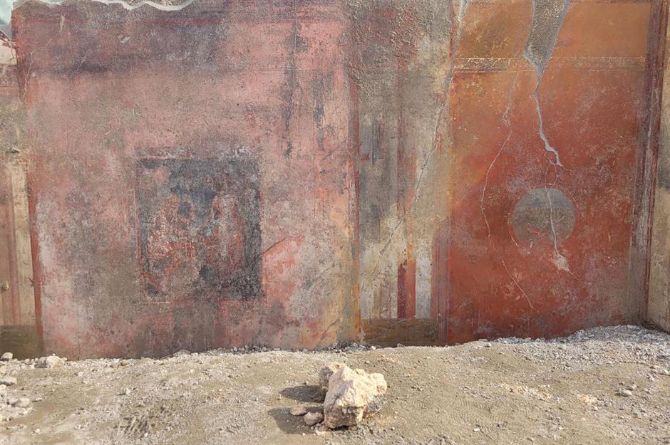 Jüngst fanden Archäologen einen beeindruckenden Schrein in einer Villa, der mit Bemalungen von Pflanzen, Schlangen und einem Pfau übersät war. Ein so genanntes Lararium war ein typisches Merkmal vieler römischer Häuser und ein Ort, an dem man die Götter anbetete und ihnen Opfergaben brachte.