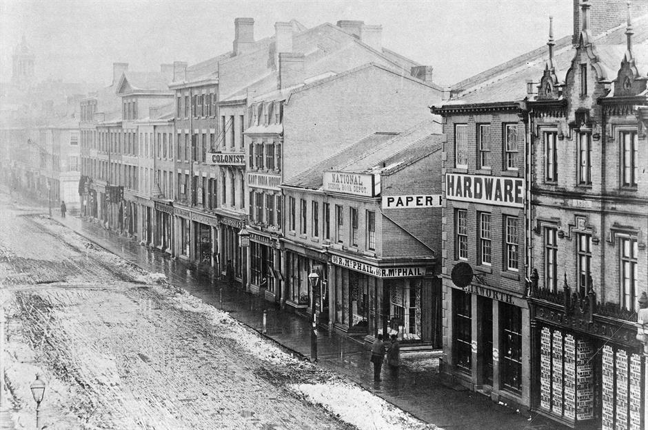 This black-and-white image powerfully portrays the effects of the Great Fire of Toronto, as a group of men navigate the mass of rubble on Wellington Street. Tearing through 20 acres of the city’s industrial centre on 19 April, the blaze consumed at least 98 warehouses and other buildings, killing one person and rendering thousands jobless.