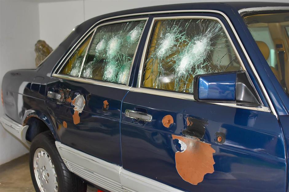 1989 kürte das Wirtschaftsmagazin „Forbes“ Pablo Escobar zum siebtreichsten Mann der Welt. Mit einem Vermögen von damals mehr als drei Milliarden Dollar – das entspricht nach heutigem Geldwert etwa sieben Milliarden Euro. Von seinem enormen Reichtum kaufte sich der Drogenbaron unter anderem eine riesige Flotte Luxusautos. Der hier abgebildete Mercedes wurde zum Beispiel in dem inzwischen aufgelösten Museum ausgestellt. Das Panzerglas ist mit Einschusslöchern übersät, die von einer Schießerei mit der Polizei oder einer rivalisierenden Gang stammen könnten. Unter den vielen Autos in Escobars Sammlung soll sich auch ein Wagen befunden haben, der dem Cadillac vom amerikanischen Mafioso Al Capone ähnelte.