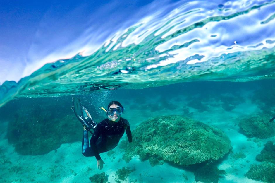 Beim Tauchen oder Schnorcheln im größten Korallenriffsystem der Welt vor der Ostküste von Australien entdecken Sie farbenfrohe Meeresbewohner und leuchtende Korallen. Informieren Sie sich vor Ihrer Reise aber unbedingt über verantwortungsvolles Tauchen, um dem sensiblen Ökosystem gerecht zu werden.