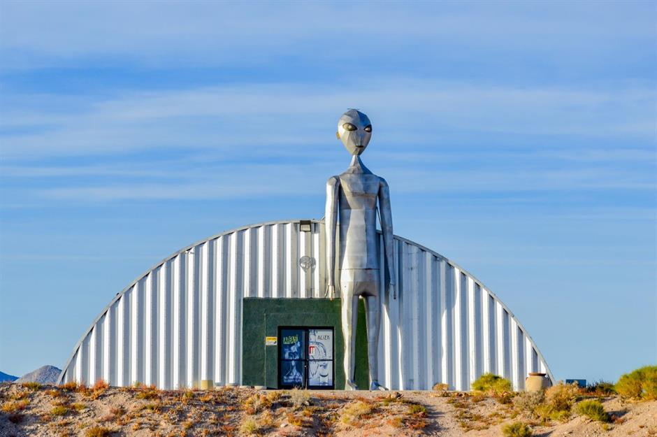 Um wohl keinen anderen Ort ranken sich so viele Verschwörungstheorien zu Außerirdischen wie Roswell in New Mexico. 1947 machte die Kleinstadt Schlagzeilen, als ein Rancharbeiter behauptete, auf Trümmer eines abgestürzten UFOs gestoßen zu sein. Das Wrack stellte sich zwar schnell als Wetterballon heraus, doch die Gerüchte um fliegende Untertassen hörten nie auf.