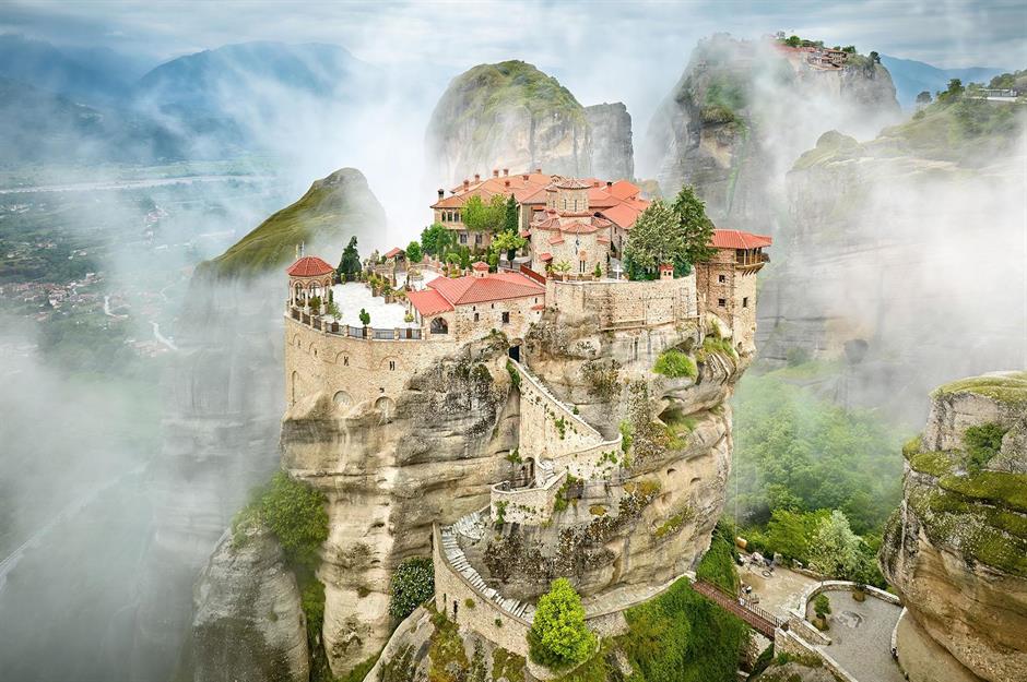 Die mächtigen, wolkenverhangenen Felsen von Meteora sehen aus wie einem Märchen entsprungen. Die hoch aufragenden Felsspitzen sind schon imposant und beeindruckend genug, doch zusätzlich zieren noch eine Reihe von Klöstern aus der byzantinischen Zeit ihre Gipfel. Sie können die Region auf spektakulären Wanderungen und Klettertouren erkunden: Zu den Höhepunkten gehören das im 15. Jahrhundert erbaute Moni Agiou Nikolaou Anapafsa sowie das Moni Agias Triados (Kloster der heiligen Dreifaltigkeit), das auch in dem James-Bond-Film „In tödlicher Mission“ zu sehen war.