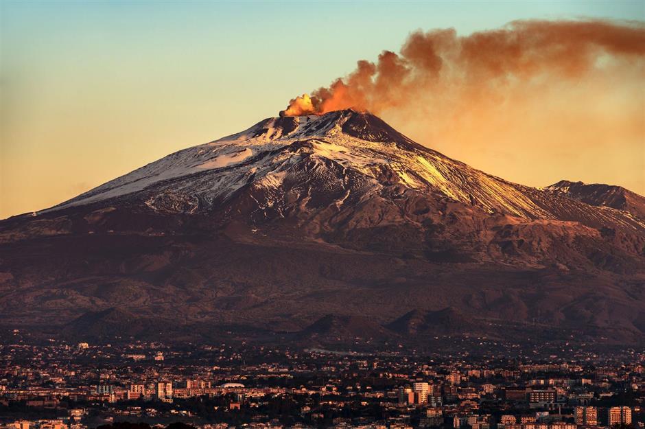 Der 3.323 Meter hohe Vulkan ist in den vergangenen 2.700 Jahren immer wieder ausgebrochen. Während einer Eruption 1993 gelang es den italienischen Behörden, die Stadt Zafferana Etnea zu retten. Lavaströme wurden mithilfe von Barrieren und Gräben um den Ort herumgeleitet.