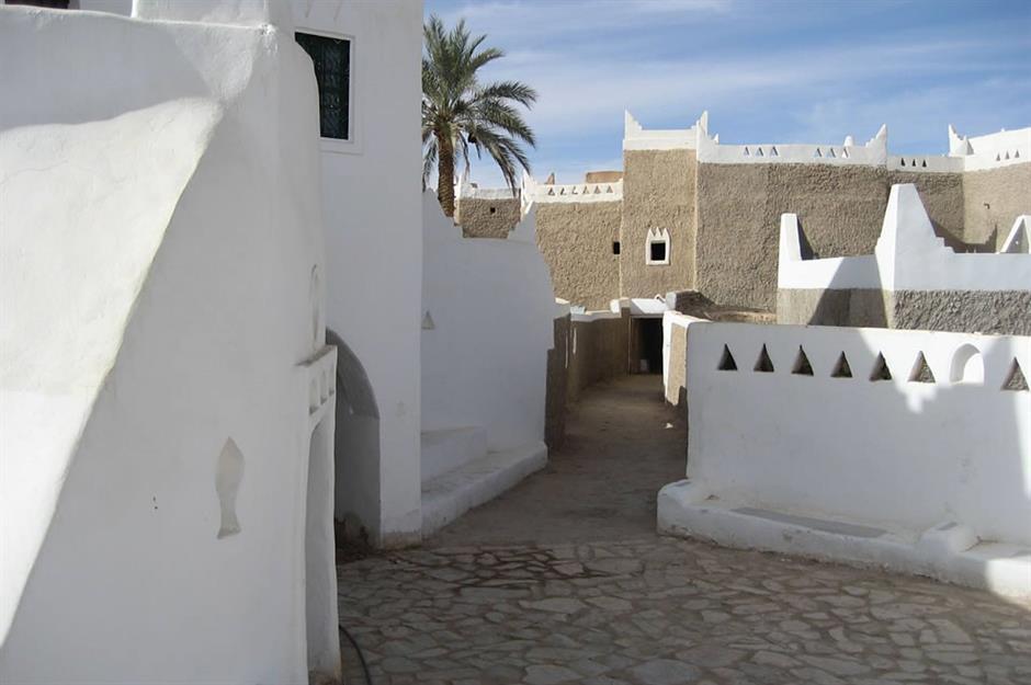 In der alten Berberstadt Ghadames in der libyschen Wüste fällt das ganze Jahr über so gut wie kein Regen. In der Region erreichen die Temperaturen im Sommer bis zu 55 Grad – eine extreme Hitze. Die Gassen des kleinen Ortes werden von weißen Häusern aus Gips gesäumt, die die Wärme reflektieren und die Bewohner vor der kochenden Sonne schützen.