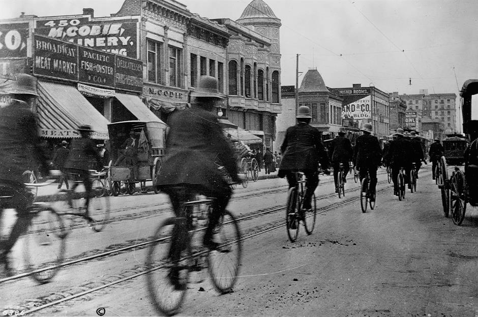 Just a year later, the bicycles were replaced by a fleet of even faster Indian motorcycles. They were re-introduced in the 1980s and more recently e-bikes have allowed officers to dash through the congested traffic of LA more quickly than their patrol car-bound colleagues.