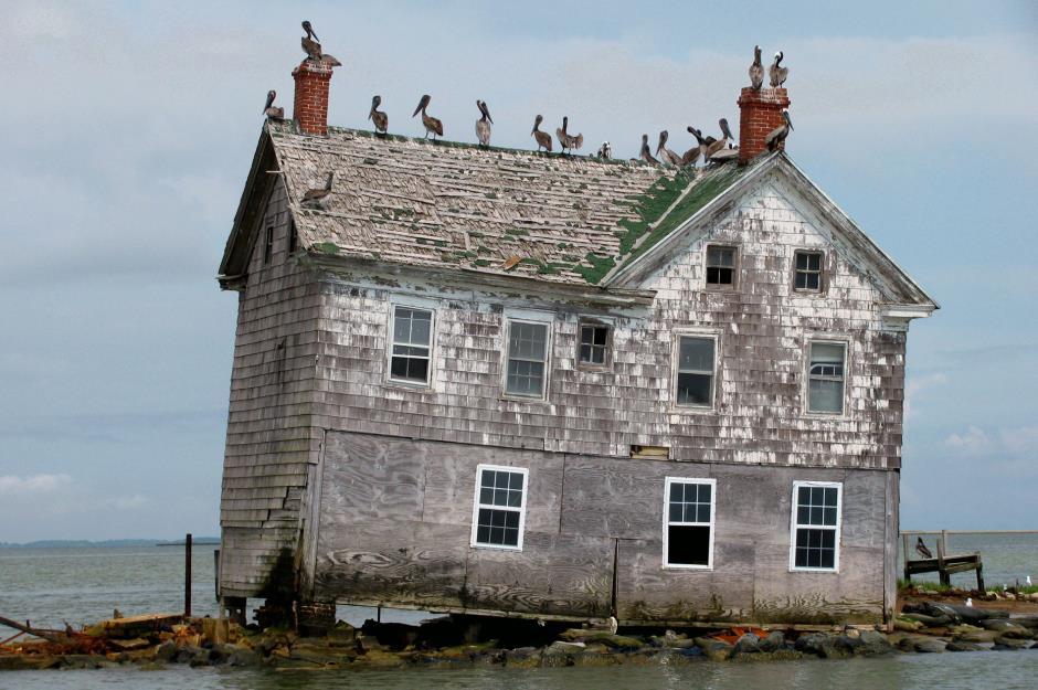 Dieses baufällige Haus soll 1888 erbaut worden sein und ist das letzte, das noch auf Holland Island steht. Die Insel liegt im Bundesstaat Maryland im Nordosten der USA und versinkt immer weiter in den Gewässern des Chesapeake Bay.