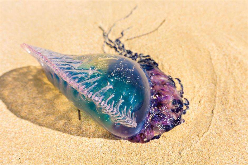 Im Oktober 2023 fanden Spaziergänger eine seltsam bunte Kreatur am Strand von Porth Dafarch, einer Bucht auf der walisischen Insel Anglesey. Es handelte sich dabei um eine hochgiftige Portugiesische Galeere, eine quallenähnliche Seeblase. Die bläulich schimmernden Nesseltiere sehen zwar faszinierend aus, der Hautkontakt mit den Tentakeln ist aber auch für Menschen sehr schmerzhaft. Für kleinere Fische und andere Beutetiere endet es tödlich. Die Galeere kommt hauptsächlich im Pazifik vor, aber auch in den Gewässern um die Kanaren und vor Portugal. Laut Experten könnten exotische Organismen wie diese aufgrund der steigenden Meerestemperaturen immer häufiger an die britische Küste gespült werden.