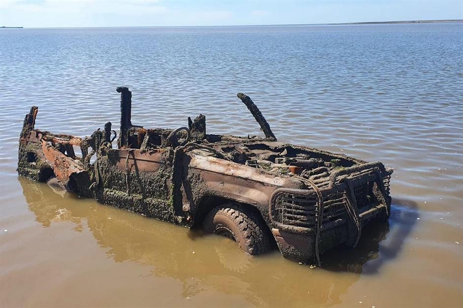 Am Strand von Bolton-Le-Sands im Nordwesten Englands taucht bei Ebbe ein altes Autowrack aus der Morecambe Bay auf, bei dem es sich offenbar um die Reste eines Jeep Cherokee handelt. Wie das seltsame Treibgut hier gelandet ist, ist ein Mysterium, um das sich zahlreiche Geschichten und Theorien ranken. Manche sagen, der verlassene Jeep habe einem Fischer gehört, der 2004 in der Nähe ertrank. Andere glauben, dass der Wagen schon seit den 1980er-Jahren im Meer vor sich hin rostet.