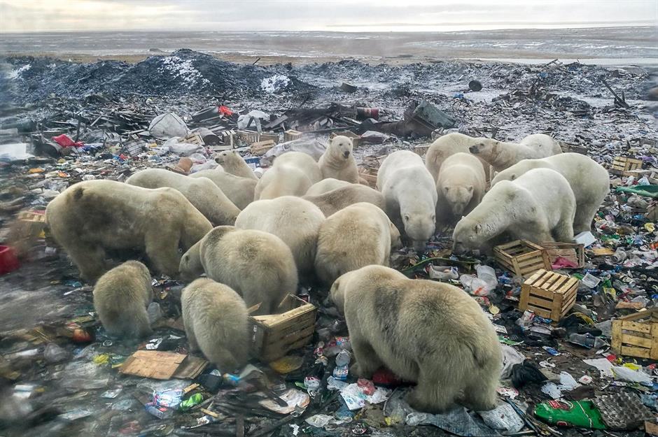 El deshielo del hielo marino en la Rusia ártica ha hecho que osos polares hambrientos y agresivos entren en zonas habitadas de la Rusia ártica al acecho de sustento. En febrero de 2019, la ciudad militar de Belushya Guba fue "invadida" por osos polares que merodeaban por las calles y saqueaban el vertedero en busca de comida. Según los informes, al menos 52 osos fueron vistos en las calles desde diciembre de 2018 hasta febrero de 2019, cuando se declaró la emergencia en la ciudad.