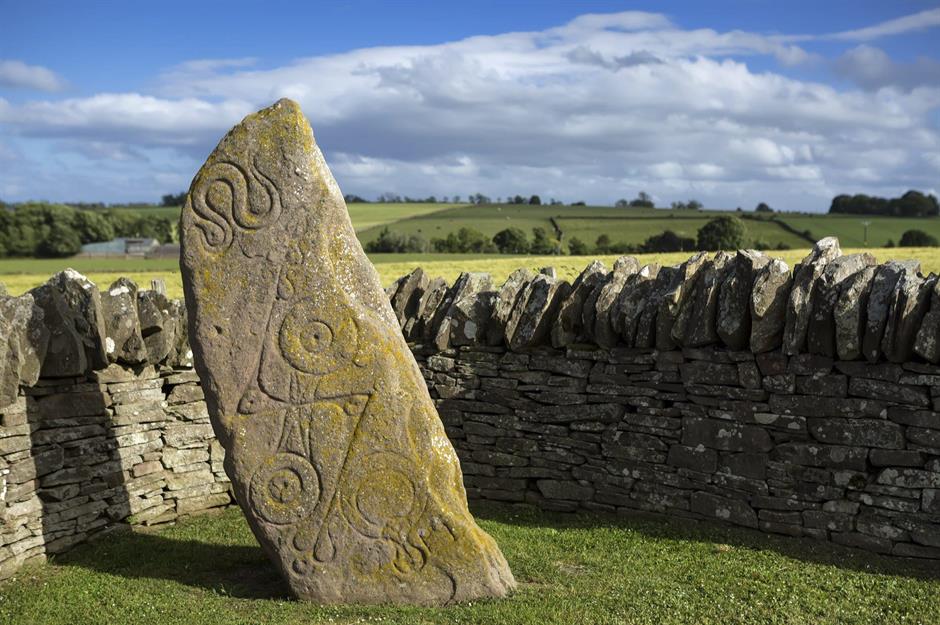 So rätselhaft wie die Steine, die sie meißelten, ist Historikern auch das Volk der Pikten selbst, das vor den Schotten im Land nördlich des Hadrianswalls lebte. Soweit bekannt, besaßen die Pikten keine Schrift, so dass wir nur raten können, was ihre Zeichnungen bedeuten. Etwa 50 Symbole tauchen immer wieder auf, normalerweise in Paaren. Darunter sind Lachse, Hirsche, Gänse und Fabelwesen. Unter den Objekten gibt es eine Sichel und einen V-Stab, einen Kamm und einen Spiegel sowie eine Doppelscheibe mit Z-Stab.