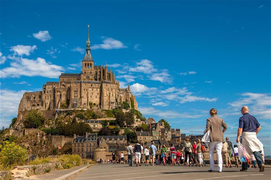 In Nordfrankreich versuchen die Behörden mit einer ungewöhnlichen Aktion, Besucher von einer ihrer beliebtesten Touristenattraktionen fernzuhalten: Bilder von endlosen Warteschlangen (wie hier zu sehen) sollen der Abschreckung dienen und Touristen fernhalten. Denn die berühmte Felseninsel Mont-Saint-Michel in der Normandie, deren Abtei aus dem 10. Jahrhundert imposant in den Himmel ragt, zog Ende Mai 2023 allein an einem Wochenende 60.000 Besucher an – ein Ansturm, den der Touristenhotspot einfach nicht mehr bewältigen könne. Die Behörden riefen Touristen dazu auf, ihren Besuch zu verschieben. Es wird nun in Erwägung gezogen, am Fuße des Wahrzeichens ein Drehkreuz zu installieren und so den Besucherzugang künftig zu begrenzen.