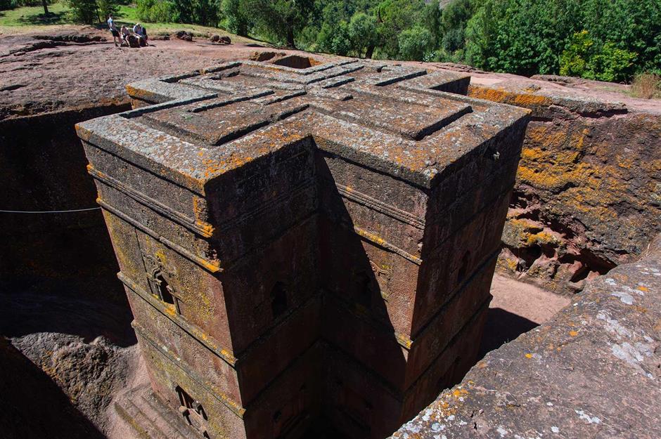 Las iglesias rupestres de Lalibela consisten de once edificios medievales excavados en la roca. Estos enormes monolitos presentan puertas, ventanas y columnas cinceladas, además de un extenso sistema de zanjas de drenaje, pasadizos ceremoniales y catacumbas. En su interior, que se hunde entre cuarenta y cincuenta metros bajo tierra, hay pinturas murales y antiguas residencias reales. Se cree que estas asombrosas obras de ingeniería datan de la época del reinado del rey Lalibela (1181-1221 d.C.)