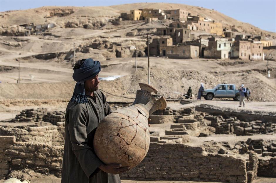 Im September 2020 begannen der ägyptische Archäologe Zahi Hawass und sein Team mit der Suche nach einem Tempel in der Nähe der Stadt Luxor am Westufer des Nils. Was sie fanden, war mehr, als sie erwartet hatten. Am 8. April 2021 gaben die Forscher die Entdeckung einer ganzen 3.000 Jahre alten Stadt bekannt, die seit Jahrtausenden unter Sand begraben lag. Die sogenannte „verlorene goldene Stadt“ Aton gilt als die größte antike Siedlung, die jemals in Ägypten entdeckt wurde. Die Bedeutung des Fundes wurde mit der Entdeckung des Grabes von Tutanchamun verglichen.