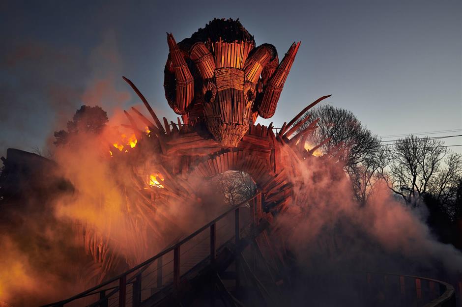 Este parque temático de Staffordshire es famoso por sus innovadoras atracciones de riesgo, y Wicker Man (El Hombre de Mimbre) suele dejar los rostros un poco pálidos. Combina el encanto destartalado de las montañas rusas de madera con efectos especiales escalofriantes que envuelven la pista laberíntica con brasas ardientes y efigies que parecen estallar en llamas al impactar.