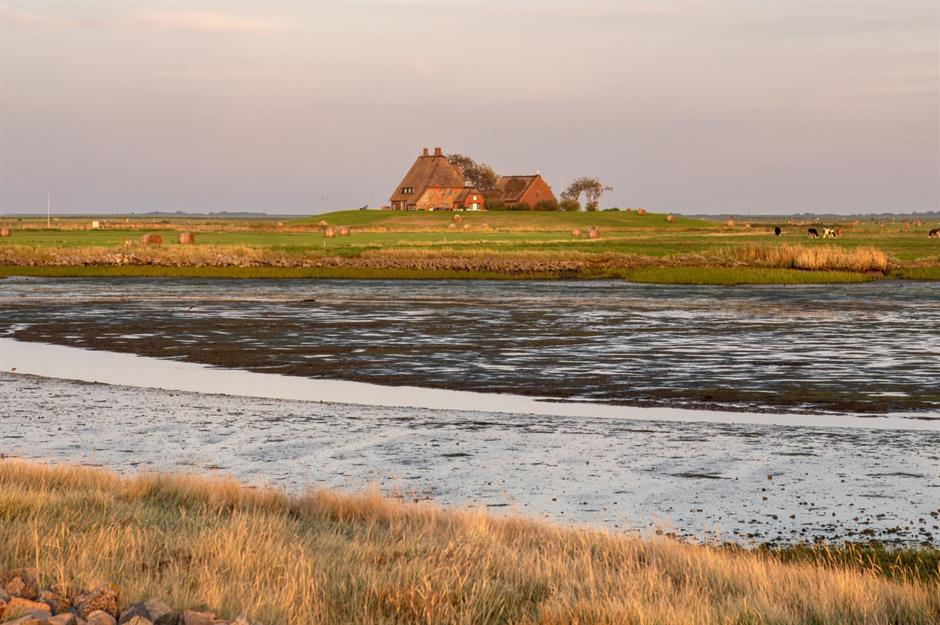 Auf zehn Mini-Inseln im Wattenmeer zwischen Deutschland und Dänemark gehört „Land unter“ zum Leben: Die Halligen vor der Nordseeküste Nordfrieslands werden regelmäßig vom Meer überschwemmt und die Bewohner, deren Häuser auf künstlich angelegten Erdhügeln stehen, können damit umgehen.