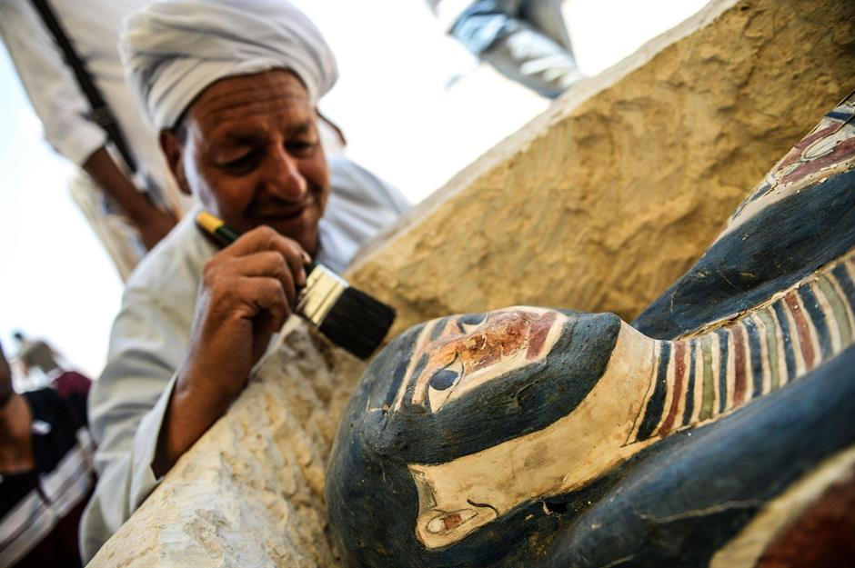 Bei Ausgrabungen entdeckten Archäologinnen und Archäologen 2022 in einem Tunnelsystem nahe der Teti-Pyramide Hunderte von Sarkophage sowie gut erhaltene Mumien. Bei einigen der Artefakte aus der Zeit des Neuen Reiches (ca. 1550-1070 v. Chr.) könnte es sich sogar um die engsten Generäle und Berater des legendären Pharaos Tutanchamun handeln. Gefunden wurden außerdem Statuen des Gottes Ptah, Uschebtis (altägyptische Statuetten, die Verstorbene verkörpern), eine Metallaxt und Teile eines altägyptischen Spiels. Einige der Artefakte sollen im Großen Ägyptischen Museum Ende 2024 ausgestellt werden.