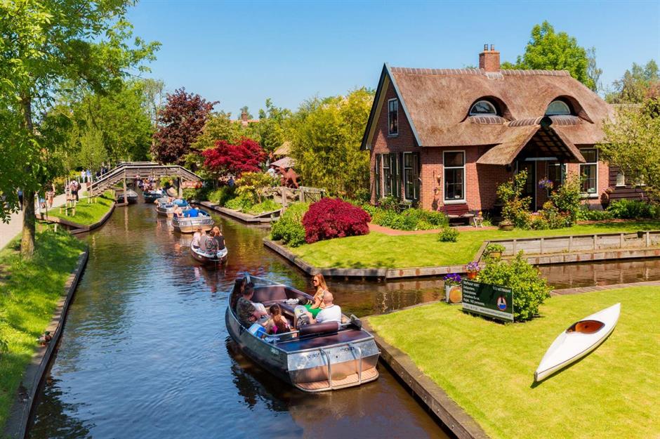 In diesem idyllischen Dorf in den Niederlanden gibt es keine Straßen: Es besteht aus mehreren kleinen Inseln, die durch handgegrabene Kanäle miteinander verbunden sind. Im sogenannten „Venedig der Niederlande“ kann man sich also nur zu Fuß, mit dem Fahrrad oder dem Boot fortbewegen.