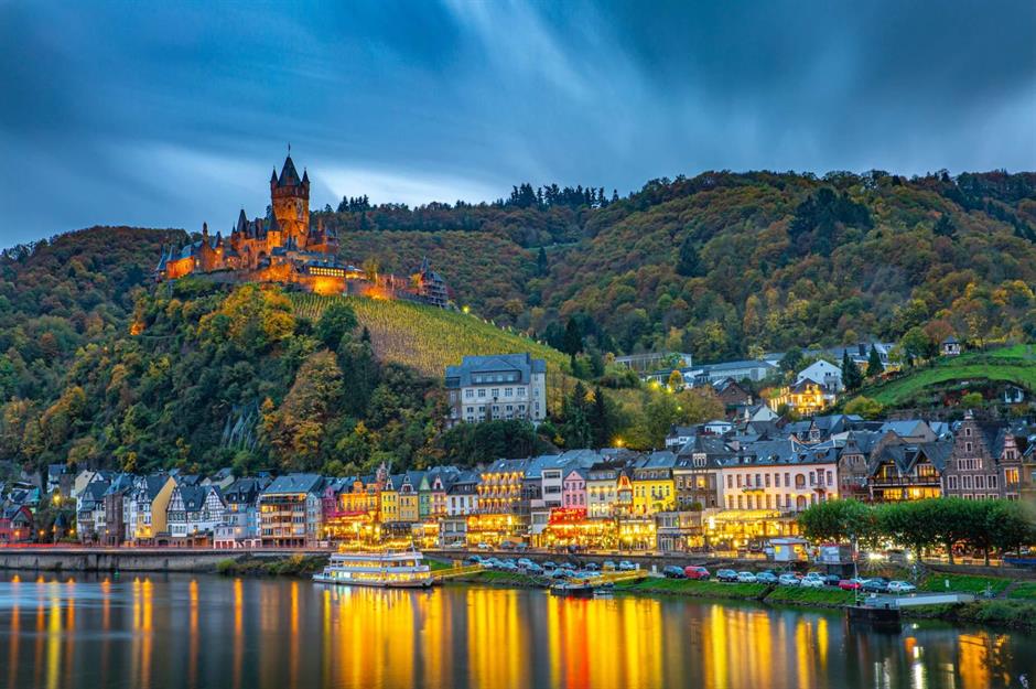 Das rheinland-pfälzische Cochem liegt am Ufer der Mosel und lockt Besucher mit seiner imposanten Reichsburg, die auf den Hügeln über der Stadt thront. Die Straßen am Flussufer laden zu einem gemütlichen Spaziergang ein und werden von historischen Häusern und Gaststätten gesäumt.