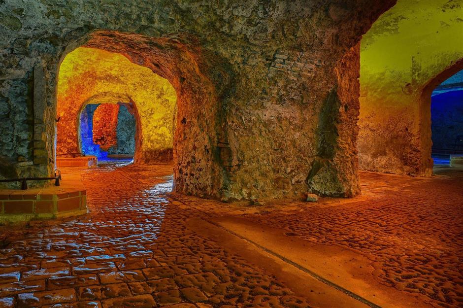 Auch in Cádiz liegen nicht alle interessanten Orte offen zu Tage. Tief unter den belebten Straßen der sonnenverwöhnten Stadt erstreckt sich ein rund 60 Kilometer langes Labyrinth aus antiken unterirdischen Gängen, Höhlen und Katakomben. Sie wurden in ganz verschiedenen Epochen und zu ganz unterschiedlichen Zwecken angelegt. Dazu gehören die Felstunnel unter dem römischen Theater (im Bild) sowie die römischen Abwasserkanäle. Die Tunnel wurden auch als Begräbnisstätte genutzt. Die „Catatumbas del Beaterio“ sind zum Beispiel eine solche. In diesem Mausoleum wurden im 17. Jahrhundert Franziskanernonnen bestattet. Während des Spanischen Bürgerkriegs und der spanischen Inquisition suchten die Menschen in diesen Gängen Zuflucht und Versteck. Besucher können den Komplex im Rahmen einer Führung besichtigen.