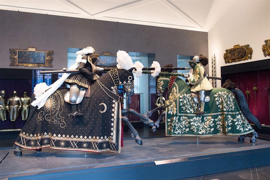 Walls positively sparkle in the lights with all the helmets, swords, muskets and pistols adoring them, and in the evocatively named Hall of the Giants intricately decorated medieval suits of armour are seen in full display atop model horses, some set up in a joust.