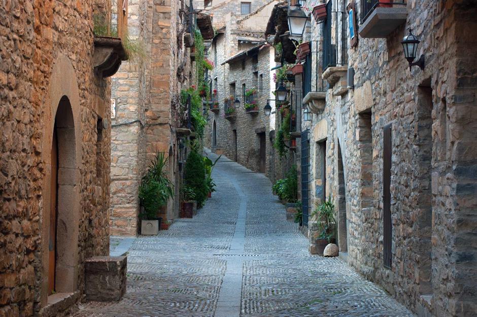 El pequeño pueblo pirenaico de Aínsa se encuentra cerca de la frontera entre España y Francia. Fue capital del Reino de Sobrarbe, pero sus serpenteantes calles medievales han sobrevivido a ese antiguo reino. Los visitantes del casco histórico de la villa pueden explorar la iglesia románica de Santa María y la ciudadela del siglo XI (construida para defender el asentamiento de los avances moros). Aquí también tiene lugar uno de los festivales de verano más prestigiosos de Aragón: el Festival Internacional de Música Castillo de Aínsa, mientras que en septiembre se celebra La Morisma, una famosa recreación de una batalla.