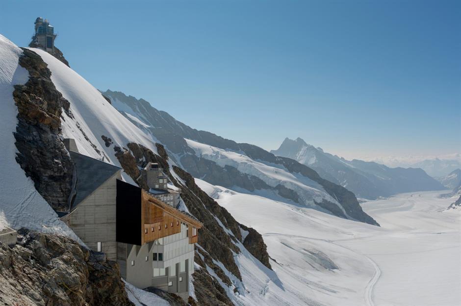 The Jungfrau Railway has been carrying passengers 5.5 miles (9km) uphill to the summit since 1912. The view from this station is unparalleled, overlooking the Swiss Plateau on one side and the Aletsch Glacier on the other.