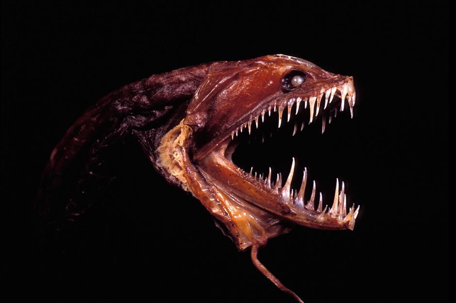 Este temible depredador es el pez dragón. Estéticamente hablando, se podría argumentar que este monstruo de las profundidades es de lo más terrífico que hay. Un dragón real podría parecer menos intimidante que este espécimen de aspecto alienígena. Hay varios tipos diferentes, con características diversas. Un rasgo común es su capacidad para consumir presas mucho más grandes que ellos.