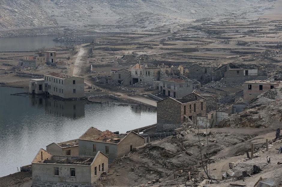 Der spanische Ort Mansilla de la Sierra ist heute ein unheimlicher Anblick. Einst lebten hier etwa 600 Menschen, aber ein in den 1960er-Jahren gebauter Damm zwang die Bewohner, ihr Dorf zu verlassen und es den Fluten zu überlassen. In Dürreperioden erhebt sich die Geisterstadt jedoch aus dem Wasser. Ihre schlammigen Straßen sind immer noch von verfallenen Häusern und kleinen Steinbrücken über den ehemaligen Bach gesäumt.