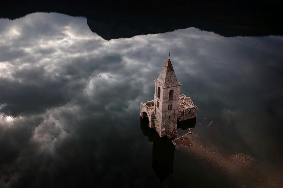 Potosi im Nordwesten Venezuelas hatte einst rund 1.200 Einwohner – doch als ein Wasserkraftwerk gebaut und der Uribante-Stausee angelegt wurde, wurde die Siedlung überflutet und die Bewohner umgesiedelt. Dieses unheimliche Bild von 2005 zeigt, was von dem einst quirligen Ort übriggeblieben ist: Ein verwitterter Kirchturm, der sich aus dem gräulichen Wasser erhebt.