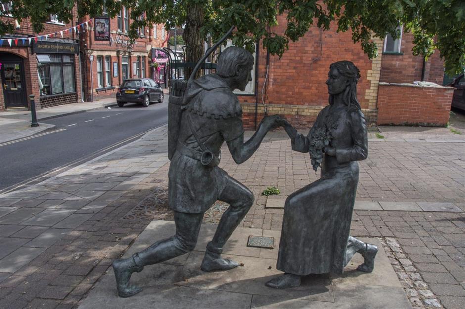 The lovely village of Edwinstowe is located in the heart of Sherwood Forest, home to Robin Hood who, according to legend, married Maid Marion in the beautiful medieval church of St Mary. A statue of the couple can be found in the High Street.