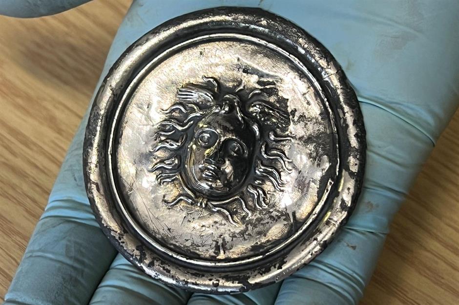 La imagen de Medusa también apareció recientemente en una falera de plata (medallón decorativo que llevaban los soldados romanos en el peto durante los desfiles) desenterrada en la fortaleza de Vindolanda, cerca del Muro de Adriano.