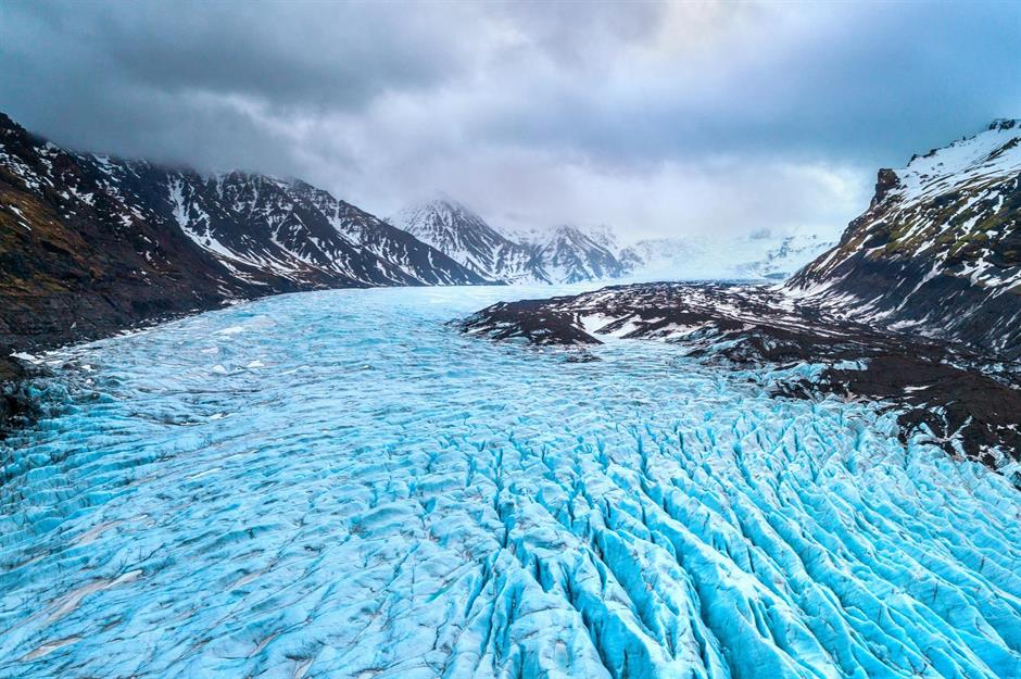 Tu guía te ayudará a evitar los peligros de las grietas resbaladizas mientras te diriges hacia la cima. Desde allí, podrás admirar las vistas heladas del glaciar Vatnajökull (que ha aparecido no en una, sino en dos películas de James Bond), la costa sur de Islandia, además de observar el volcán Öræfajökull, el segundo volcán más grande de Europa.