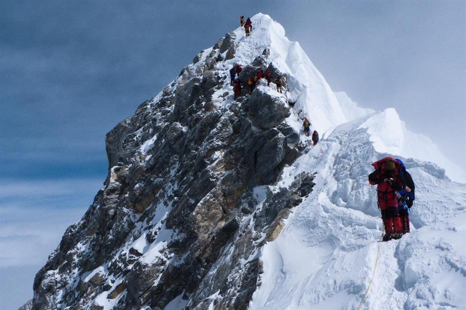 Doch ein schweres Erdbeben im Jahr 2015 lockerte die Felsbrocken und zerstörte den Hillary Step. Laut Berichten soll der Aufstieg über die Südwand nun einfacher sein. Hier zu sehen ist, wie Bergsteiger den Gipfel im Jahr 2021 erklimmen.