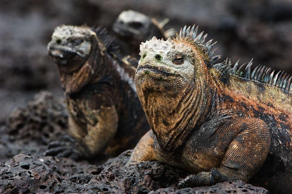 Als der berühmte Naturforscher Charles Darwin auf den Galapagos-Inseln zum ersten Mal Meerechsen entdeckte, beschrieb er sie als die „ekelhaftesten und schwerfälligsten Echsen“, die er je gesehen hatte. Und man muss schon zugeben, dass die Tiere mit ihrer faltigen schwarzen Haut, den grimmigen Gesichtern und den stacheligen Schuppen auf dem Rücken etwas gewöhnungsbedürftig aussehen.