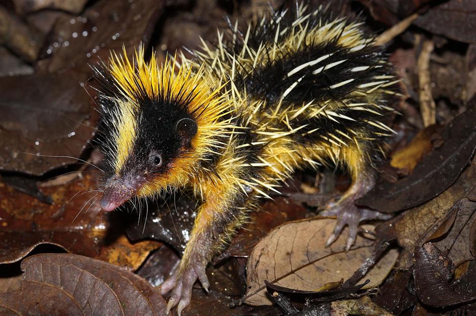 Sie sehen aus wie verrückte Punk-Rock-Igel: Die etwa hamstergroßen Streifentenreks leben in den Regenwäldern von Madagaskar. Warum diese Tiere leuchtend gelbe Streifen haben, ist den Wissenschaftlern bis heute nicht ganz klar.