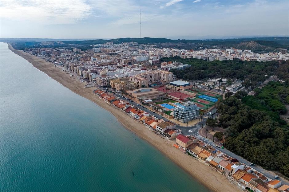 La ciudad balneario presume de una playa de arena blanca de 11 km de longitud que, según las investigaciones, está siendo erosionada por las actividades humanas en la cercana cuenca del río Segura, lo que ha provocado cambios en los patrones del oleaje.