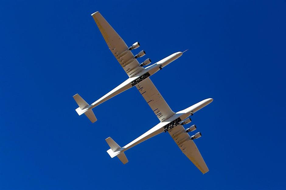 Mit 117 Metern hat der aktuelle Guinness-Weltrekordhalter Stratolaunch die größte Flügelspannweite aller jemals gebauten Flugzeuge. Hinter dem Flugzeug, das 2017 zum ersten Mal aus seinem kalifornischen Hangar gerollt wurde, stand der 2018 verstorbene Microsoft-Mitbegründer Paul Allen.