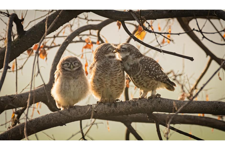 „Nehmt euch ein Zimmer“, denkt das müde Eulchen links.