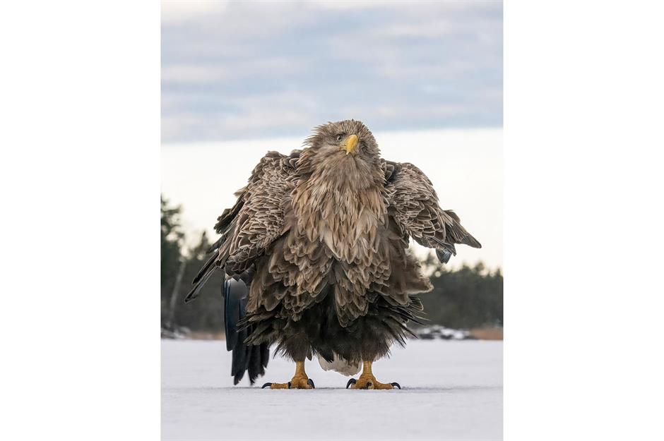 ... los! Dieser Seeadler meint es offenbar ernst mit dem Eisschnelllauf. Wir würden ihm die Goldmedaille ja gönnen ...
