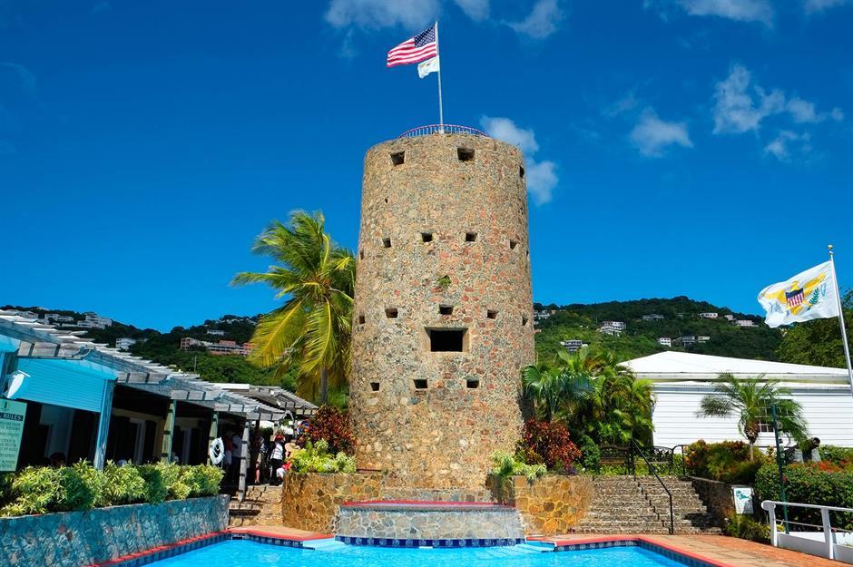 Als mögliche Verstecke werden zum Beispiel der Wachturm Blackbeard's Castle auf der US-Jungferninsel St. Thomas (im Bild) und die schmale Landzunge Plum Point in North Carolina genannt.