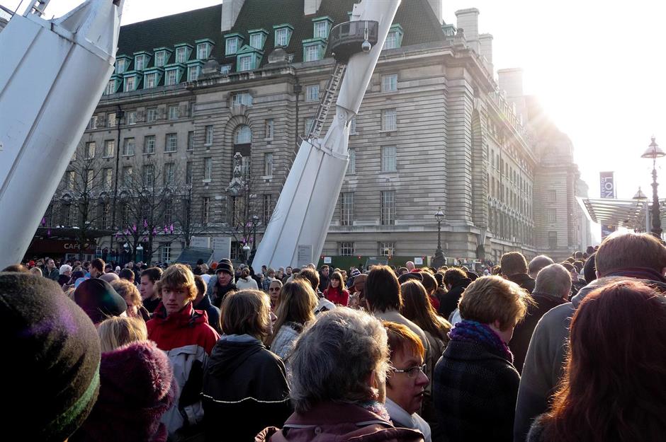 La Queen's Walk est bondée de touristes impatients de monter à bord. Les files d'attente peuvent durer pendant plus de deux heures (à moins que vous n'ayez des billets Fast Track) et, une fois la nacelle atteinte, s’ensuit la déception de photos gâchées par les innombrables marques, rayures et taches sur la vitre.