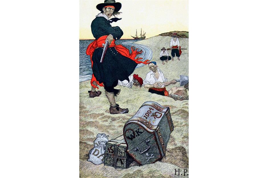 Vergrabene Schätze gibt es in der Geschichte durchaus, aber da sie sich natürlich auf dem Festland befinden müssen, stammten sie in den allermeisten Fällen nicht von Piraten. Das Bild eines Piraten, wie wir es heute im Kopf haben, wurde maßgeblich durch Robert Louis Stevensons Roman „Die Schatzinsel“ von 1883 geprägt. Schatzkarten, Augenklappen, Holzbeine und Piratenslang sind in erster Linie reine Fantasie.