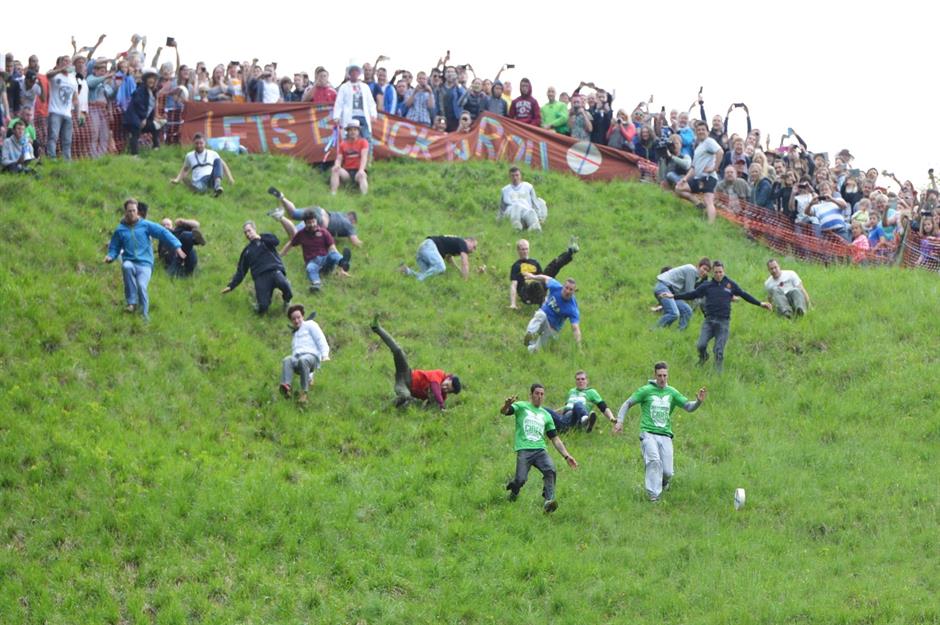 Not for the faint-hearted, participants fling themselves down the 590-foot (180m) incline, which has sections as steep as a 1:2 gradient, in pursuit of the bouncing cheese. What does the victor win? The wheel of cheese, of course.